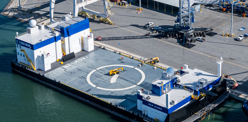 Less than a minute after second stage ignition the payload fairings will be jettisoned. We then get a few minutes before the next mission milestone, and the start of the booster’s reentry process. At T + 6:48, 3 of the booster’s BE-4 engines will ignite apart of the reentry burn. The engines are expected to fire for 30 seconds, significantly slowing the stage. At T + 8:27, we’ll see the single-engine booster landing burn. That engine burn and mission milestone is expected to last around 42 seconds. If everything goes to plan, the booster will come into frame and slowly touch down on the Jacklyn barge.